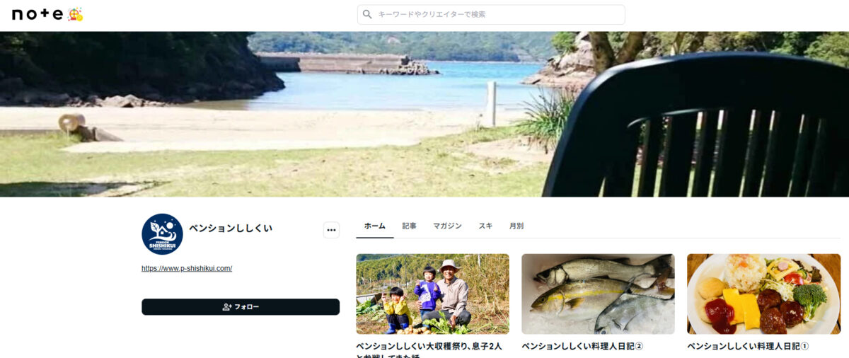 このたび、「ペンションししくいのNote」をスタートしました![]()